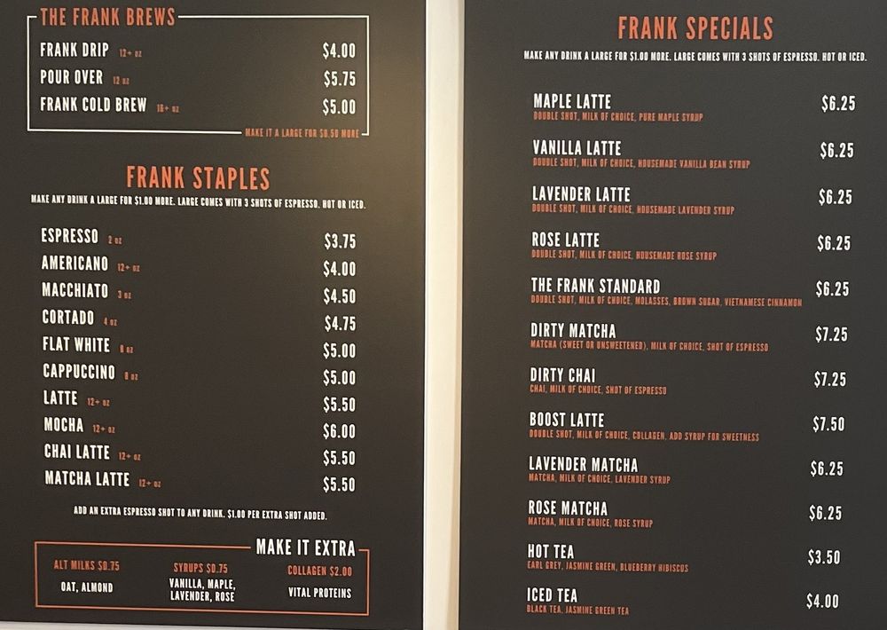 Frank Coffee Menu (Update 2025)